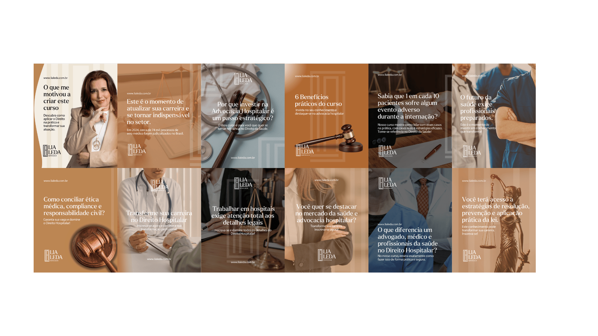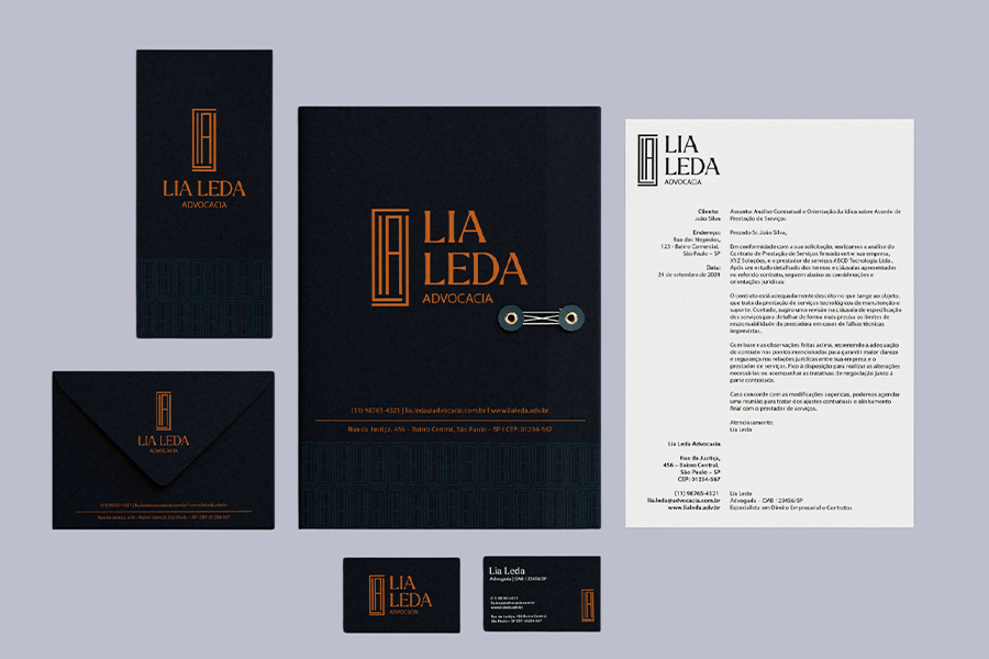 O resultado é uma identidade visual que posiciona Lia Leda como referência em soluções jurídicas estratégicas para o setor da saúde, diferenciando-a claramente de escritórios tradicionais. A marca comunica simultaneamente expertise técnica e abordagem humanista, traduzindo visualmente sua proposta de construir soluções jurídicas que respeitam a cultura e as condições de cada cliente.
