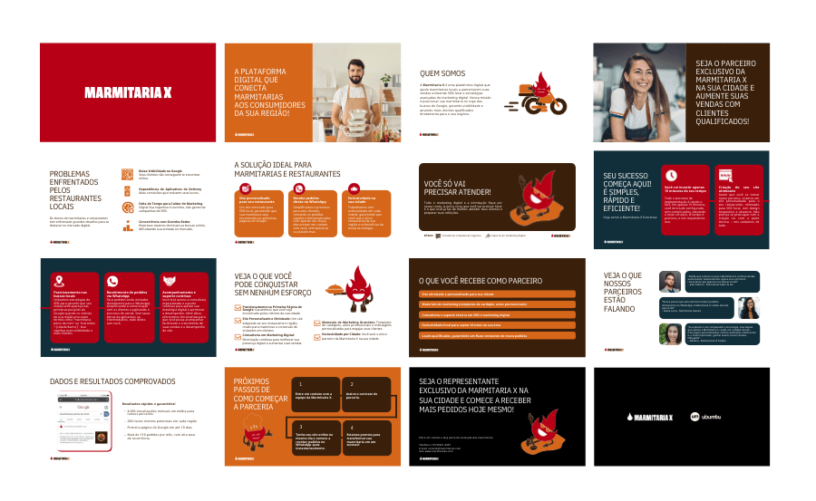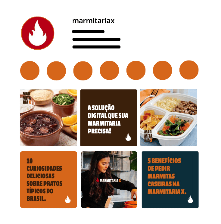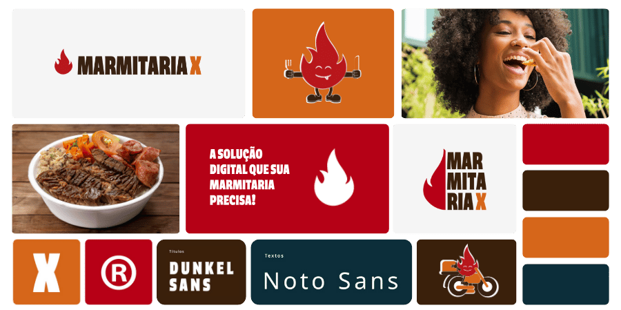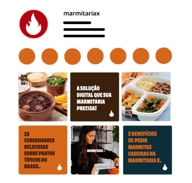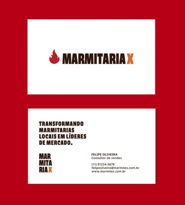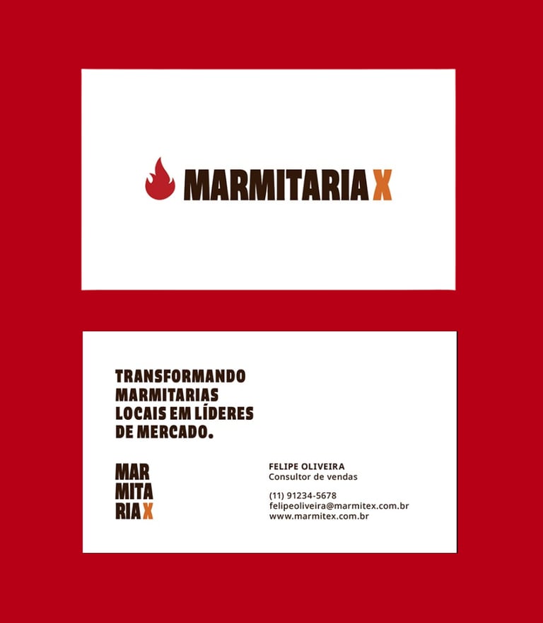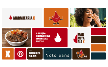 A construção da identidade visual da Marmitaria X foi pensada para unir estratégia, clareza e reconhecimento imediato. O logotipo combina uma tipografia sólida com o ícone de fogo, criando uma marca forte, memorável e fácil de identificar. O ícone de fogo representa energia constante, movimento e o impulso necessário para ativar o crescimento dos parceiros. Toda a construção prioriza leitura rápida e aplicações eficientes em ambientes digitais, garantindo consistência em diferentes formatos e plataformas.