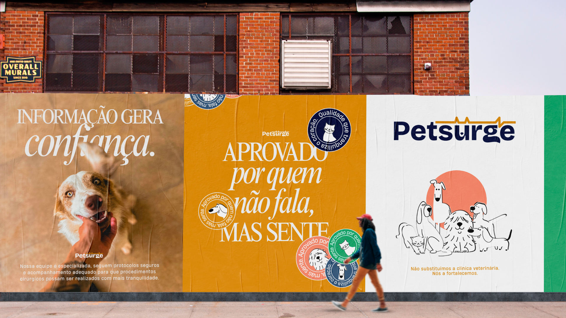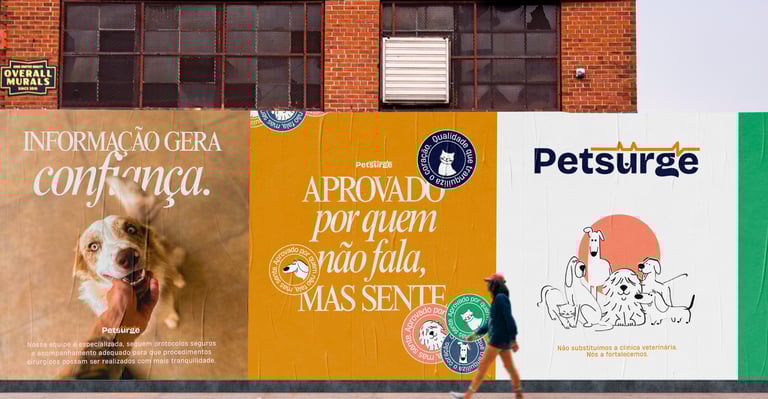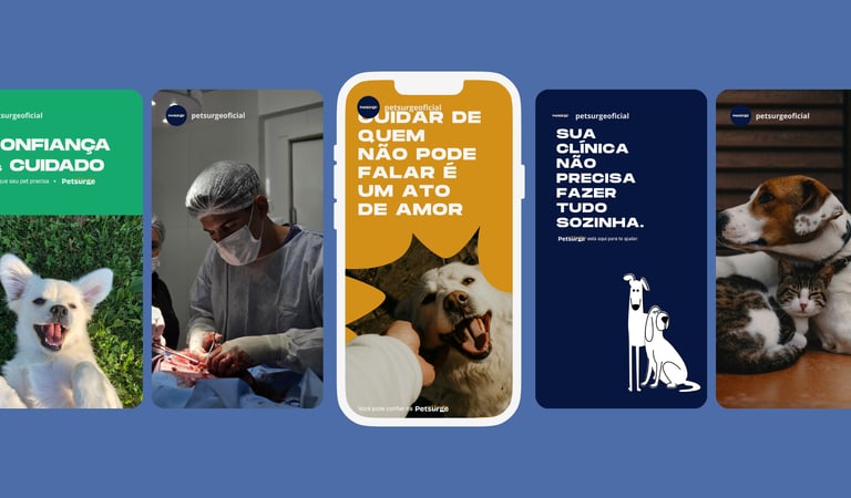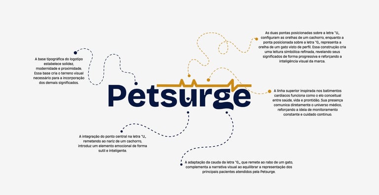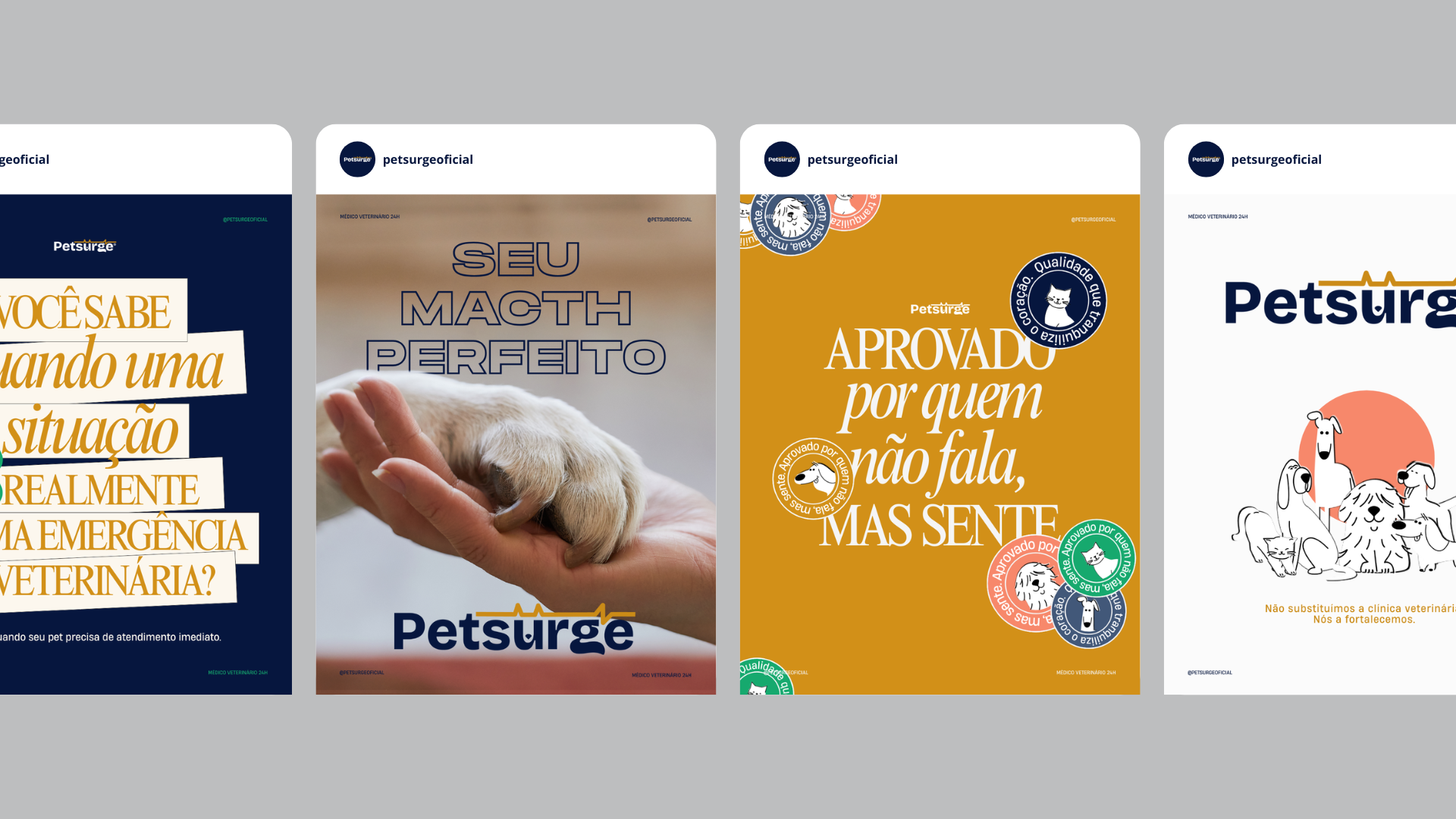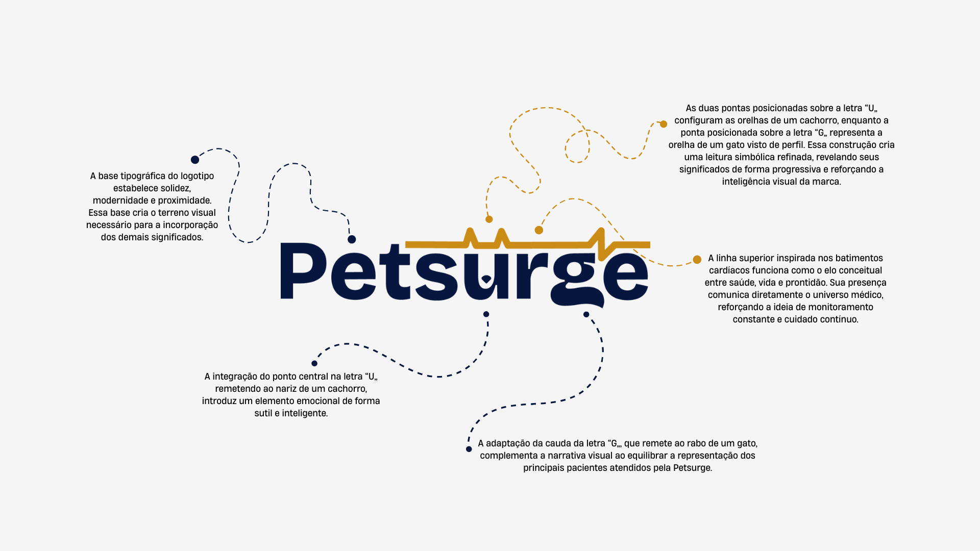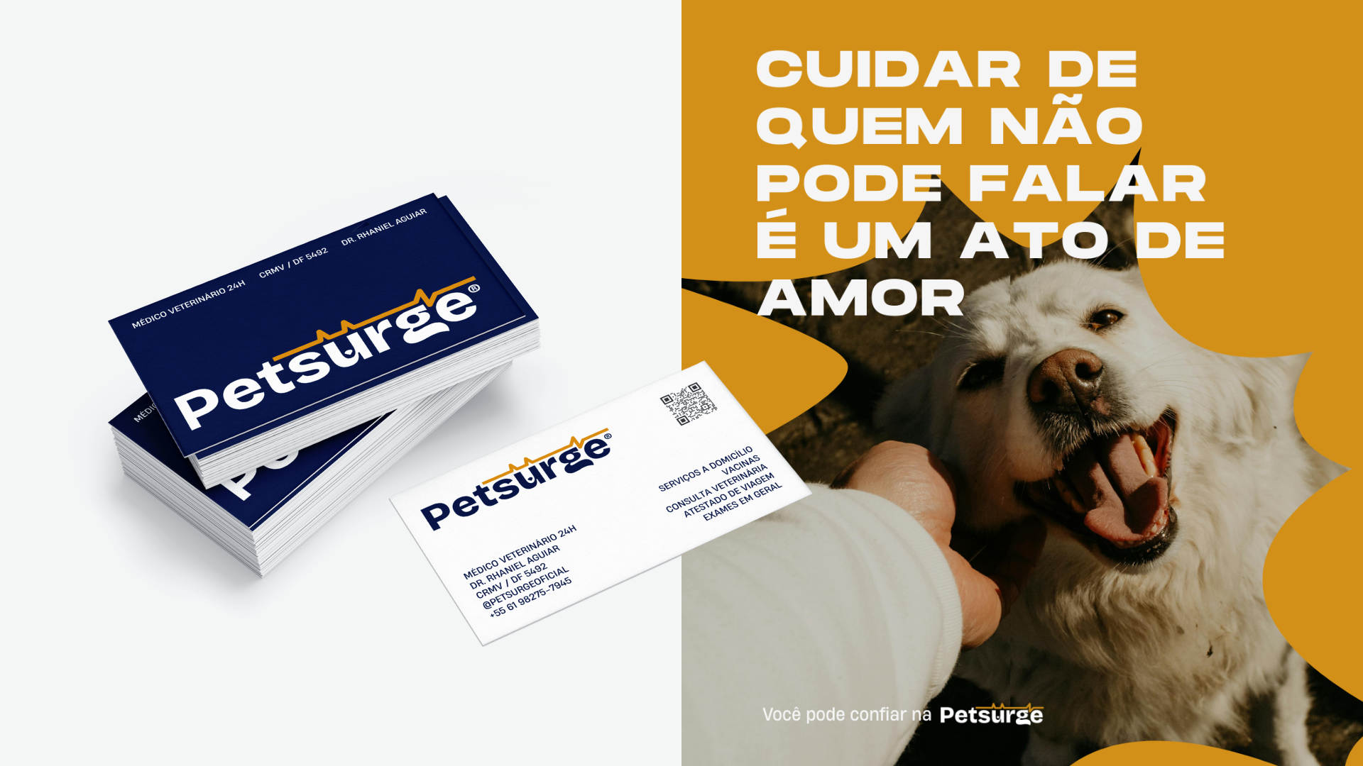 O resultado é uma marca sólida, contemporânea e emocionalmente conectada, capaz de transmitir segurança, especialização e humanidade. A identidade visual fortalece o posicionamento da Petsurge como referência técnica, ao mesmo tempo em que cria proximidade e confiança com tutores e parceiros.